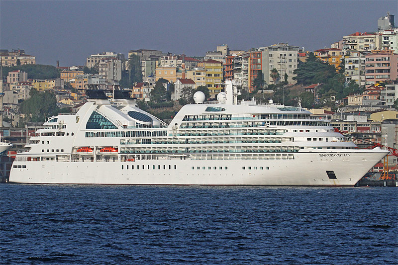 in Istanbul (Türkei), Galatasaray, bei Karaköy am Pier für Kreuzfahrtschiffe liegend