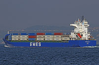 2nd ship of a series of type identical feeder container ships of Peene-Shipyard type "Baltic-Max PW 1200" (15 vessels, 7 with and 8 without cargo gear) - with open bridge wing, also see >Izmir Express<, >Vivien A<, >Gabriel A<, (>Maersk Rome<, >Frederik<) and (>Maersk Rundvik<, >Alexander B<) + 8 vessels of type "improved Baltic-Max PW 1200", here also see >Cape Falster< |