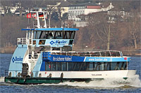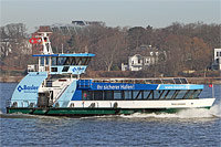 7th ship of "HADAG type 2000" (12 vessels) - registry no.: "H 6008", 2nd painting >Basler Versicherungen<. After reconstruction in 2012 at "SSB Spezialschiffbau Oortkaten GmbH Hamburg, Oortkaten b. Hamburg, Federal Republic of Germany" (now equipped with a bulbous bow). |