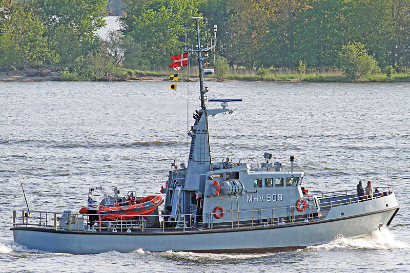 at the end of the outward bound parade of the Hamburg Harbour birthday 2013 >HDMS Speditøren< is leaving Hamburg