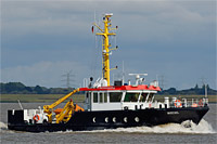 Einzelschiff vom Typ "SV 24" (weiterentwickelte Version), siehe auch den Prototypen >Baltic< - geräteführendes Amt: ABz1 Wedel - ausgestattet mit 1 Kran "Global Davit Typ Rhs.TH.S" á 1 ts und 1 hydraulischen Kran á 790 kg Tragfähigkeit - mit geändertem Schriftzug "Vermessung" am Aufbau |