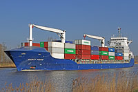 Typschiff eines Paares baugleicher Feeder-Containerschiffe - ausgestattet mit 2 Kranen á 45 ts Tragfähigkeit |