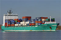 13th ship of a series of identically constructed feeder container ships of Peene-Shipyard type "improved Baltic-Max PW 1400" (14 vessels), also see >Cape Fulmar< and (>OOCL Novgorod<, >A La Marine<) + 2 vessels of type "Baltic-Max PW 1400", here also see >Emotion< and >Empire< |