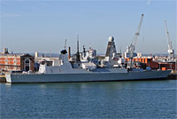 2nd "Daring" class destroyer [type 45] (6 vessels, also see >HMS Defender< and >HMS Duncan<) - launched: BAE Systems Naval Ships, Govan Shipyard, Glasgow, Scotland, United Kingdom (No. 1062) - main armament: PAAMS VLS SAM system consisting of 48x SAM "Silver A50", 16x "Aster-30" and 32x "Aster-15" missiles; 8x SSM "Harpoon", 2x2 324 mm fixed Stingray ASW torpedos, 1x 114-mm gun Mk 8, 2x 30-mm AA gun DS-30M, 2x 20-mm gun Mk 15 Phalanx CIWS, 1x ASW Lynx or Merlin helicopter (Sea Skua missiles and/or Stingray ASW torpedos). |