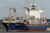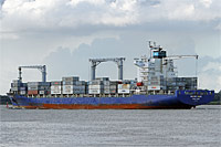 9. Schiff einer Serie baugleicher Containerschiffe dieser Werft (3. Generation, 11 Einheiten) - siehe auch >Libra Copacabana<, >Maersk Niagara<, >Maersk Nijmegen< und >Santa Marta Express< - siehe auch das Typschiff der 1. Generation: >Mearsk Newcastle< sowie das Typschiff der 2. Generation: (>Cap Beaufort<, >HSL Sheffield<) - ausgestattet mit 4 Kranen á 40 ts Tragfähigkeit |