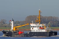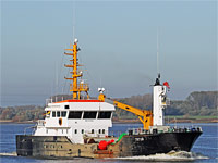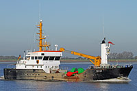 Einzelschiff im Design "B100" - Rumpfhersteller: Stocznia Polnocna S.A. (Northern Shipyard), Danzig, Polen (Nr. B100/1), ausgestattet mit 1 hydraulischen Kran á 9 ts Tragfähigkeit - nach Eignerwechsel, ohne "WSV.de"-Beschriftung am Aufbau |