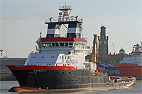 The >Nordic< has been fitted with superstructures that can be sealed tight and are explosion-proof, to operate in a contaminated, flammable or harmful atmosphere, e.g. after a tanker accident. The operation area is the North Sea with the base in Cuxhaven. The "ArGe Küstenschutz" is a consorcium of the two Hamburgian towing companies "Bugsier" and "Fairplay". |