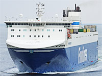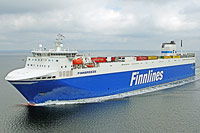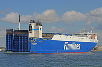 7th ship of a series of identically constructed ferries (12 vessels), also see >Finnpulp<, >Finnmill<, (>Jutlandia Seaways<, >Jutlandia Sea<), >Finnsea<, >Finnsun< and >Finntide< - total lane length: 3,326 m, trailer capacity: 230 - the ship is equipped with a scrubber for waste gas purification |