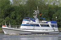 ehemaliger Seenot-Rettungskreuzer SRK >Theodor Heuss<, 1985 außer Dienst gestellt und an einen Privatmann verkauft, der das Schiff zu einem Kabinenkreuzer umbauen ließ. Im Jahr 2008 wurde das Schiff an einen hamburger Reeder verkauft und später in >Jan< umbenannt. |