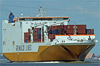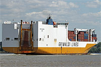 3. Schiff einer Serie baugleicher Container- / RORO-Schiffe der Grimaldi "Grande Benin"-Klasse (5 Einheiten), siehe auch >Grande Senegal< und >Grande Togo< - ausgestattet mit 2 Kranen á 40 ts Tragfähigkeit, Ladungsmeter: 2.500 |