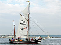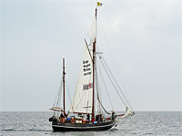 das Schiff diente unter dem Namen >Karl Krull< bis in die 70er Jahre als Fischereifahrzeug der DDR. Von 1985 bis 1990 wurde es zu einer gut segelnden Gaffelketsch umgestaltet. |
