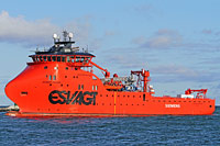 hull yard: Cemre Mühendislik Gemi Insaat Sanayi ve Ticaret Ltd. Sirketi (Cemre Shipyard), Altinova / Yalova, Turkey (No. 118) - type: WOSV (wind service operation vessel), design: Havyard 832 SOV, clear deck area: 900 mē, equipped with 1 crane of a lifting capacity of 3 ts and 1 crane of 2 ts. Additionally equipped with an "Ampelmann Heave Compensated A-type Gangway" which can reach a height of more than 20 m above sea level and is able to compensate waves up to 3.00 m height which allows the service technicians a secure access to the wind turbines. |