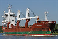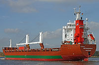 5th ship of a series of identically constructed multi purpose dry cargo ships of the sonamed Spliethoff "F" type (6 vessels), also see >Flevogracht< - equipped with 3 cranes of a lifting capacity of 80 ts each |