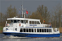 until 2000 in use as a Lühe - Schulau ferry (Elbe) - at the time of the photos the ship was on a transfer from Rügen to Hamburg. Since April 14th 2017 it's used as ferry on the river Elbe between the "St. Pauli piers" and Hamburg-Blankenese for "FRS Helgoleine GmbH & Co. KG". A little later, the ship was renamed >Kleine Freiheit<, also see there. |