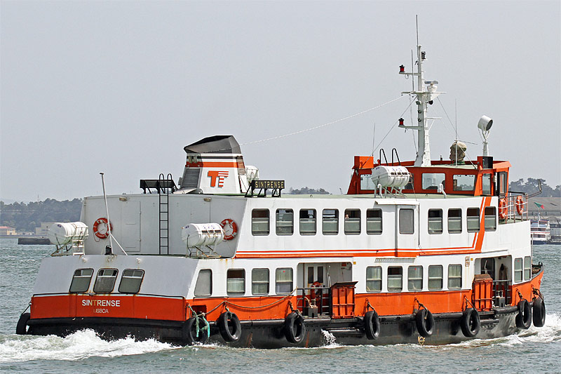 Lisbon harbour (Portugal), after leaving the ferry pier >Cais de Sodré<, course ferry pier >Cacilhas<