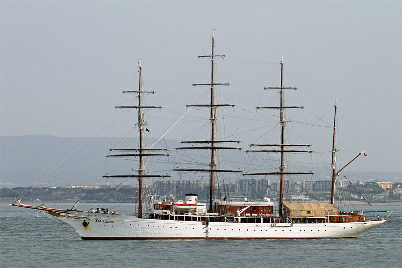 Lisbon harbour (Portugal), anchored on the river >Tejo< not far from the >Santa Apolónia Cruise Terminal<