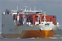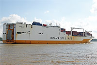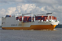 6. Schiff einer Serie baugleicher Container- / RORO-Schiffe der Grimaldi "Grande Lagos"-Klasse (6 Einheiten), siehe auch >Grande Lagos<, >Grande Cotonou< und >Grande Abidjan< - Ladungsmeter: 5.772, ausgestattet mit 2 Kranen á 40 ts Tragfähigkeit |