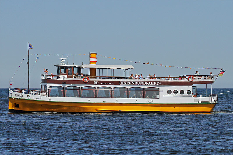in Rostock-Warnemünde, Seekanal, während einer Linienfahrt, kurz vor dem Einfahren in den "Alten Strom"