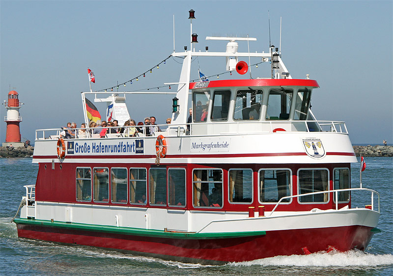 Rostock-Warnemünde (DE), Sea canal, on harbour tour, shortly before entering the "Alter Strom"