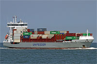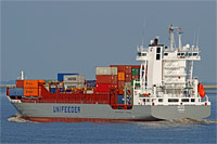 15th ship of a series of identically constructed feeder container ships of Sietas standard type 168 (26 vessels - German ice class E3, open hatch container ship, closed bridge wing, black window frames, 1 welded deck) - also see >Maersk Flensburg< (type 168a), >Larissa< (type 168b) and >Ida Rambow< (type 168V) - also see >Partnership< |