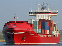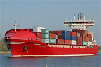 14. Schiff einer Serie typgleicher Feeder-Containerschiffe vom Typ "Baltic-Max PW 1200" der Peene-Werft (15 Einheiten, 7 mit und 8 ohne Ladegeschirr) - mit geschlossener Nock, siehe auch >Izmir Express<, >Yigitcan A<, >Vivien A<, >Gabriel A<, >Maersk Rome< und (>Maersk Rundvik<, >Alexander B<) + 8 Einheiten vom Typ "improved Baltic-Max PW 1200", siehe hier auch >Cape Falster< - nach Eigner- und Flaggenwechsel |