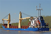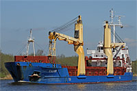 3rd ship of a series of identically constructed multi purpose dry cargo ships (4 vessels), also see >Bugoe< and >Karkloe< - equipped with 2 cranes of a lifting capacity of 45 ts each |