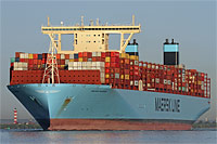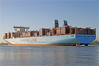 4. Schiff einer Serie baugleicher Containerschiffe der sogenannten Mærsk "EEE"-Klasse (11 Einheiten, 2. Generation), bezogen auf die Containerkapazität von April bis Mai 2017 die größten Containerschiffe der Welt - siehe auch >Manchester Mærsk< |