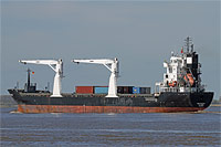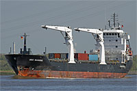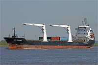 10. Schiff einer Serie baugleicher Mehrzweckfrachter vom Typ "N-120" / "BBC-9K-120A" (13 Einheiten im Design "Volharding 9500"), siehe auch >Uniscout< und >Thorco Alliance< - Rumpfhersteller: Jiangsu Yangzi Changbo Shipbuilding Co. Ltd., Jingjiang, Volksrepublik China (Nr. 07-017) - ausgestattet mit 2 Kranen á 60 ts Tragfähigkeit |
