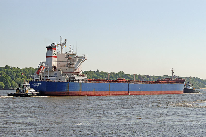 with assisting tugs >Peter< (stern) and >Michel< (bow)