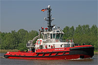 6th ship of a series of identically constructed tugs (8 vessels), also see >BOA Balder< - equipped with 1 hydraulic crane "HS-Marine AK25HE4" of a lifting capacity of 6 ts |