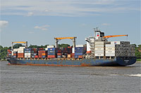 8. Schiff einer Serie baugleicher Containerschiffe dieser Werft (2. Generation, 9 Einheiten), siehe auch (>Cap Beaufort<, >HSL Sheffield<), >Cap Beatrice<, >Rio Thelon< und >Rio Thompson< - siehe auch das Typschiff der 1. Generation: >Mearsk Newcastle< sowie das Typschiff der 3. Generation: >Maersk Niagara< - ausgestattet mit 4 Kranen á 40 ts Tragfähigkeit - siehe auch >Rio Taku< |