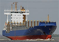 10th ship of a series of identically constructed feeder container ships of Sietas type 168b (13 vessels - no German ice class, open hatch container ship, opened canopied bridge wing, white window frames, 1 welded deck), also see >Larissa<, (>Ruth Borchard<, >Allegro<), >Holland Maas Habana<, >Angela<, (>Actuaria<, >ARA Atlantis<, >Emily Borchard<) and (>Buxtehude<, >Dagmar<) - also see >OOCL Nevskiy< (standard type 168) and >Maersk Flensburg< (type 168a) - also see >Max Linus Dede (2007)< |