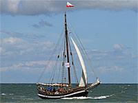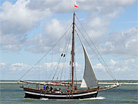 displacement: 35 ts - replica of the correspondent pilot cutter yacht built in Cappeln 1850 for the "Neumühlener-Oevelgönne pilot brotherhood" (Hamburg). Yachts were small fast sailing ships which only transport people. Anchorage: museum harbour Lübeck. |