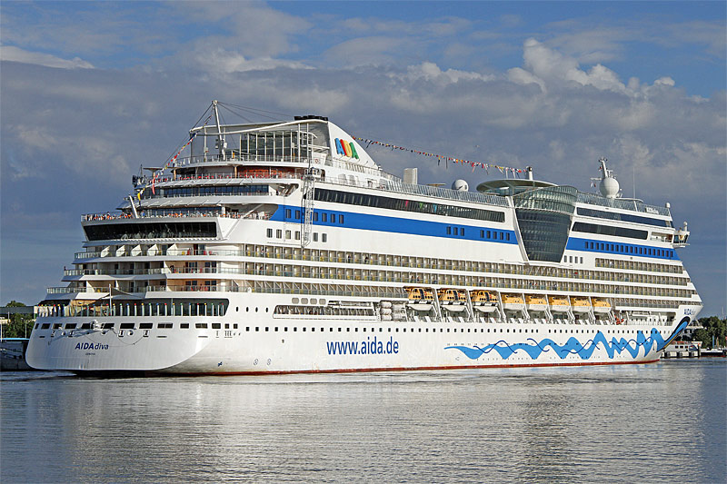 in Rostock-Warnemünde, Seekanal, nach Beendigung des Wendemanövers, Kurs >Liegeplatz P7< des >Passagierkais<