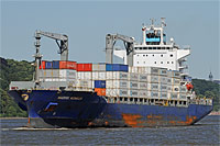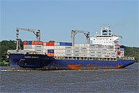8. Schiff einer Serie baugleicher Containerschiffe dieser Werft (3. Generation, 11 Einheiten) - siehe auch >Libra Copacabana<, >Maersk Niagara<, >Maersk Nimes< und >Santa Marta Express< - siehe auch das Typschiff der 1. Generation: >Mearsk Newcastle< sowie das Typschiff der 2. Generation: (>Cap Beaufort<, >HSL Sheffield<) - ausgestattet mit 4 Kranen á 40 ts Tragfähigkeit |