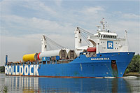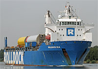 2. Schiff der sogenannten "RollDock S"-Klasse (3 Einheiten) - 2 weitere Schiffe werden aufgrund ihrer größeren Länge als "RollDock ST"-Klasse eingestuft - ausgestattet mit 2 Kranen á 350 ts Tragfähigkeit |