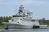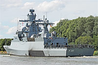 "Braunschweig class" corvette and 2nd ship of type K-130 (1st generation, 5 vessels, also see >Erfurt<, >Oldenburg< and >Ludwigshafen am Rhein<), 1st corvette squadron of mission flotilla 1 in Warnemuende - main armament: 2x 2 Saab Bofors RBS-15 Mk 3 SSM (currently not installed), 2x 21-round CIWS SAM missile launcher "RAM" Mk 49, 1x 76-mm gun OTO Melara DP, 2x 27-mm AA rapid gun Rheinmetall MLG 27 |