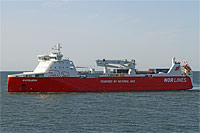 type ship of a pair of identically constructed Ro-Ro cargo ships - equipped with 1 crane of a lifting capacity of 80 ts - total lane length: 990 m |