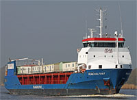 Typschiff einer Serie baugleicher Mehrzweckfrachter vom Typ "Euro Freighter VG3800-HC" (6 Einheiten), siehe auch >Peak Bremen<, >ABIS Bordeaux< und >Peak Breskens< - Rumpfhersteller: Partner Shipyard Spolka Z Ograniczona Odpowiedzialnoscia, Stettin, Polen (Nr. 103) - siehe auch >ABIS Belfast< |