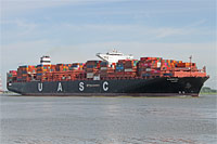 5. Schiff einer Serie baugleicher Containerschiffe der sogenannten "UASC (A15)"-Klasse (11 Einheiten) - Schiff und Hauptmotor sind bereits für den späteren Betrieb mit LNG als Treibstoff ausgelegt - siehe auch >Sajir<, >Al Dhail<, >Al Jasrah< und >Umm Qarn< |