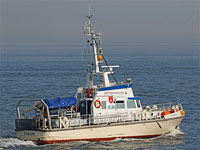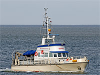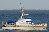 ehemaliges Patrouillenboot der Fischereiaufsicht, gebaut nach dem Vorbild eines deutschen Seenot-Rettungskreuzers - ausgestattet mit 1 hydraulischen Kran á 0,35 ts Tragfähigkeit |