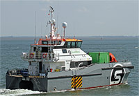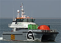 Typschiff eines Paares baugleicher Offshore-Fahrzeuge vom Typ "StratCAT26m" - Rumpfhersteller: Strategic Marine (V) Co. Ltd., Vung Tau, Vietnam (Nr. H204) - Deckladefläche: 102 m², ausgestattet mit 1 hydraulischen Kran "Palfinger PK23500" á 10 ts Tragfähigkeit |