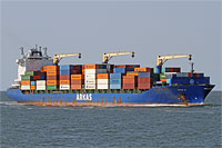 2nd ship of a series of identically constructed container ships of type "VW 2500.4" (3? vessels) - equipped with 3 cranes of a lifting capacity of 45 ts each |