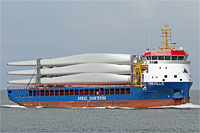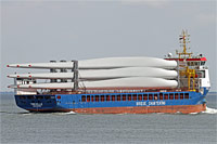 3. Schiff einer neuen Klasse von open top- / Zwischendecker-Frachtschiffen (bislang 4 Einheiten), siehe auch >Johannes< - Deckladefläche: 1.106 m² - Innenraumladefläche: 1.404 m² mit einer Bodendrucklast von 15 MT/m² |