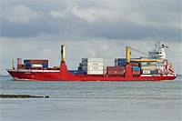6th ship of a series of type identical feeder container ships (23 vessels in design "Peters 650" - 11 without and 12 with cargo gear), also see (>Euro Storm<, >Conmar Elbe<), >Euro Squall<, >Samskip Endurance<, >NCL Haugesund< and >BCL Iwona< - equipped with 2 cranes of a lifting capacity of 50 ts each - the boom of the forward crane is currently dismantled |