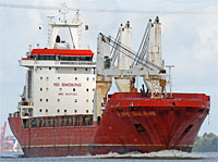 3rd ship of a series of identically constructed multi purpose dry cargo ships of type „Beluga Persuasion“ (10 vessels in design "Beluga P1"), also see (>Baltic Winter<, >Hanna<) and >Pacific Winter< - equipped with 2 cranes of a lifting capacity of 400 ts each and 1 crane of 120 ts |