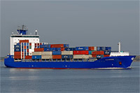 14. Schiff einer Serie baugleicher Feeder-Containerschiffe vom Typ "improved Baltic-Max PW 1400" der Peene-Werft (14 Einheiten), siehe auch >Cape Fulmar< und >Christopher< + 2 Einheiten vom Typ "Baltic-Max PW 1400", siehe hier auch >Emotion< und >Empire< - siehe auch >OOCL Novgorod< - nun mit weiterem Betreiber |