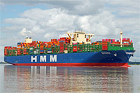 3rd ship of a series of identically constructed container ships of the sonamed "HMM Megamax" class (12 vessels), also see >HMM Algeciras<, >HMM Dublin<, >HMM Gdansk<, >HMM Hamburg< and >HMM Southampton< - due to the container capacity from April 2020 until July 2021 the largest container ships in the world |