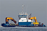 Typ "Damen Multi Cat 3013" - Rumpfhersteller: Safe Co. Ltd. Spolka Z Ograniczona Odpowiedzialnoscia, Gdingen, Polen (Nr. 571678) - ausgestattet mit 2 hydraulischen Kranen "HS Marine AKC 410/18 HE3" á 30,28 ts Tragfähigkeit - Deckladefläche: 220 m² |