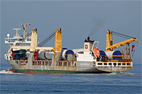 4. Schiff einer Serie baugleicher Mehrzweckfrachter vom Sietas Standard-Typ 161 (4 Einheiten - keine deutsche Eis-Klasse, 1 geschweißtes Deck), siehe auch >Wilma< und >Lena< - ausgestattet mit 2 Kranen á 275 ts und 1 Kran á 150 ts Tragfähigkeit, Deckladefläche: 2.120 m² - siehe auch >Paula< (Typ 161a), sowie >Annette< (Typ 161b) |